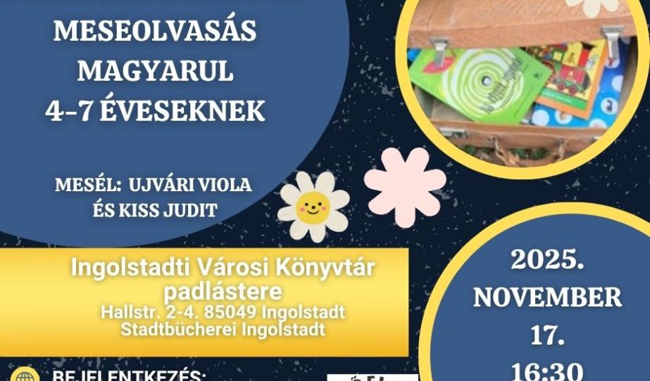 Mesebőrönd Mesefelolvasás magyarul 2025-11-09 Mesés foglalkozás az ingolstadti Petőfi Kör Kultúregyesületnél. Tovább