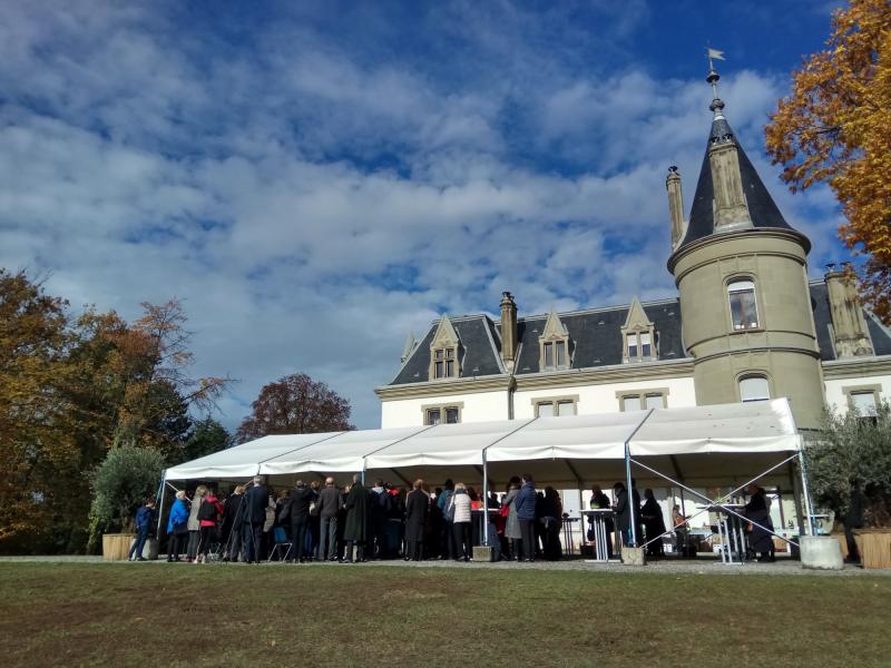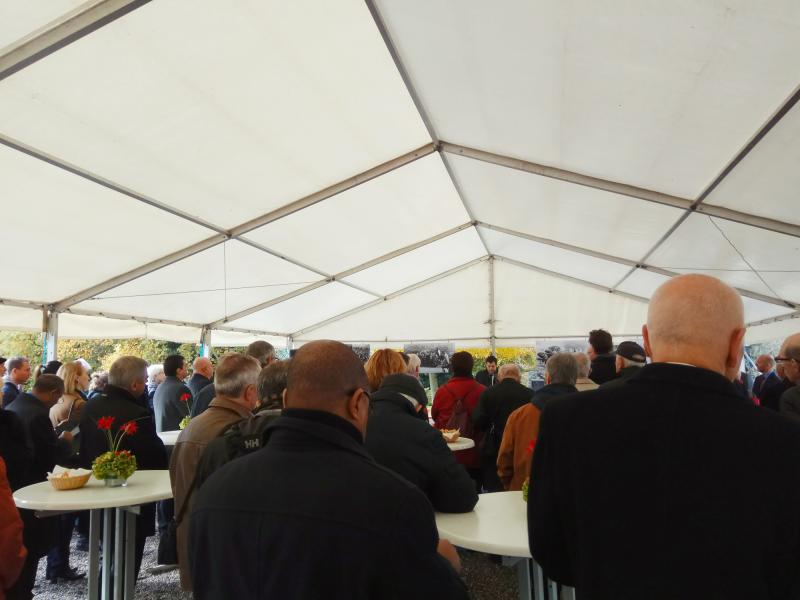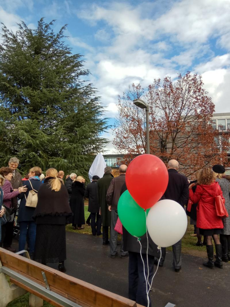 A hivatalos átadáson több, mint száz fő vett részt. Köztük olyan prominens személyek, mint Nagy István, Magyarország svájci nagykövete, Dr. Schőberl Márton, kulturális diplomáciáért felelős helyettes államtitkár, Dr. Horváth Zsuzsanna, Magyarország állandó ENSZ képviselője, Laurent Jimaja, Grand-Saconnex polgármestere, Párkányi Péter, a mű alkotója, valamint Mercz László a Genfi Magyar Kulturális Központ elnöke.