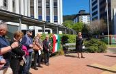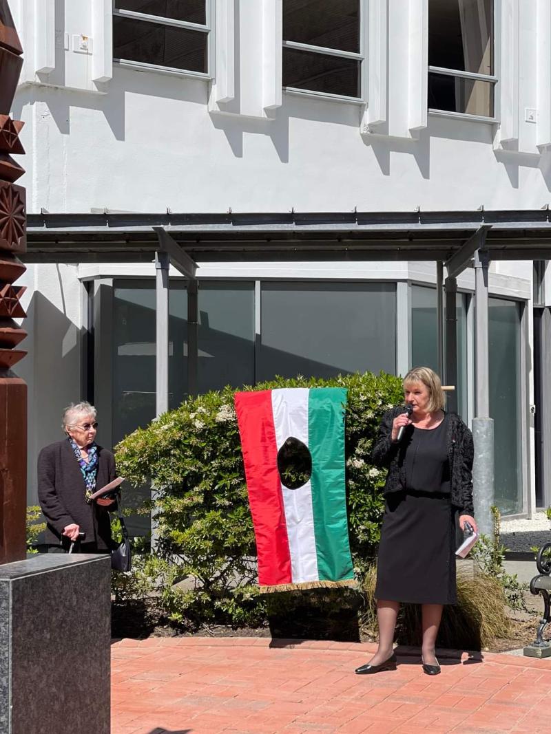 A délelőtti órákban a Magyar Millenium Parkban, vagy ahogy sokan ismerik, Magyar Kertben került sor ünnepi koszorúzásra az 1956-os forradalom és szabadságharc emlékére, valamint az újonnan vésett járólapok leleplezésére.