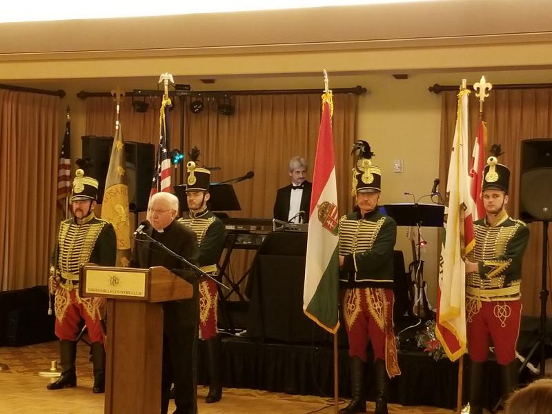 Az első Californiai Huszár Regiment bevonulását követően Pataki Ildikó, a bál szervezője, köszöntötte a vendégeket, majd Németh Maurus atya is szólt a jelenlévőkhöz. Dr. Szilágyi Péter különleges ajándékot hozott a San Francisco-i magyar cserkészeknek, egy nemzeti zászlót, ami korábban az Országházon lobogott. Magyari-Köpe Gábor, református lelkész asztali áldását követően került sor a finom vacsora elfogyasztására. A vacsora után tombolahúzás következett, majd az első bálozók bemutatták nyitótáncukat, amivel meg is kezdődött az este jó hangulatú táncos része. A helyi Eszterlánc együttes mezőségi táncokkal színesítette a programot.