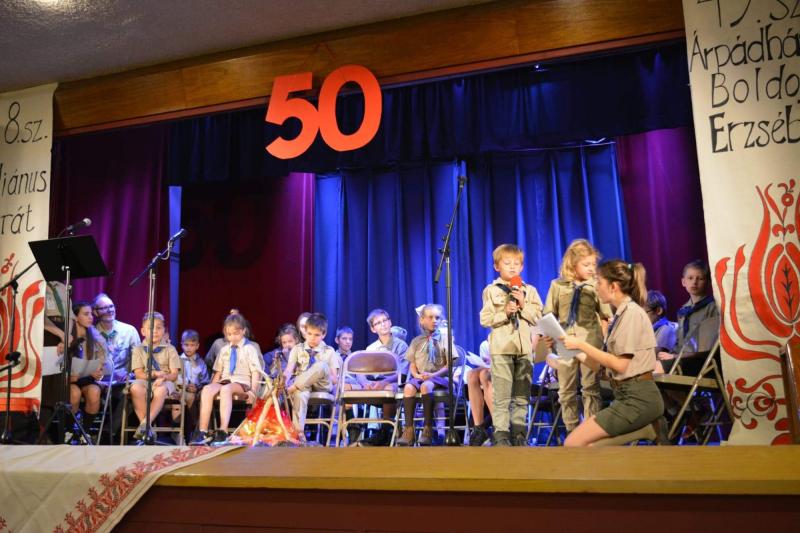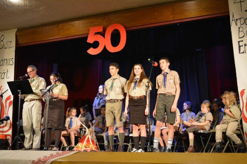 50. évfordulóját hagyományos cserkészvacsorával ünnepelte a 49. számú Árpádházi Boldog Erzsébet Leány Cserkészcsapat szombaton Los Angeles-ben a Szent István Római Katolikus templom Láni termében. A rendezvényen közel kétszázan vettek részt. A vendégeket Balog-Sipos Éva és Kass Pál cserkészparancsnokok köszöntötték, majd beszédet mondott Széles Tamás főkonzul és Oriold Alpár Nyugati Körzeti Parancsnok. Tóth Mária, azaz Matyi néni, felidézte azokat a szép és hosszú esztendőket, amikor még ő vezette a csapatot. Theodor Atya Isten áldását kérte a folytatáshoz. A cserkész gyerekek kedves műsorral készültek az ünnepre, míg a felnőttek moldvai tánccal. A nagyszabású vacsorára már csütörtökön megkezdődtek az előkészületek - ínycsiklandó sütemények, húsleves, vadas és töltött csirkecomb került többek között az asztalokra. Az estét tombolahúzás és táncház zárta.