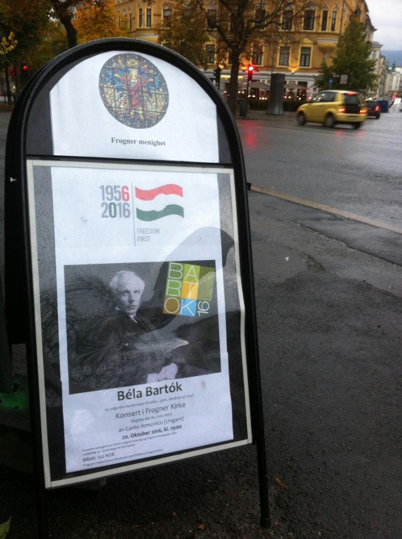 Október 20-án, a Canto Armonico Énekegyüttes adott koncertet Bartók Béla és kortársai műveiből, az oslói Frogner Kirke templomban.