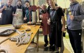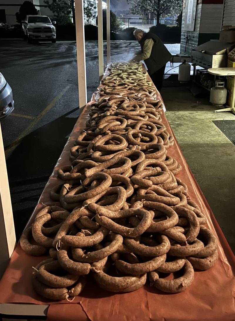 A hagyományos Karácsonyi Bazáron nagyon kapósak a magyar ételkülönlegességek - hurka, kolbász, töltött káposzta, bejgli és más hagyományos magyar sütemények. A Magyar Házban már kialakult egy összeszokott csapat így készítjük napokig a finomságokat - a férfiak főleg a húsos ételeket készítik a hölgyek a finomabbnál finomabb süteményeket.