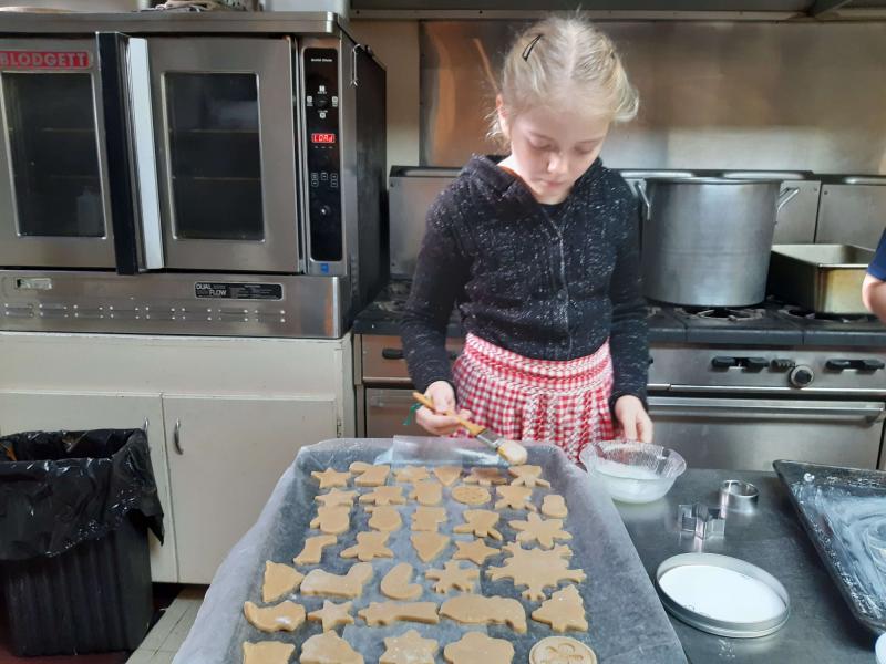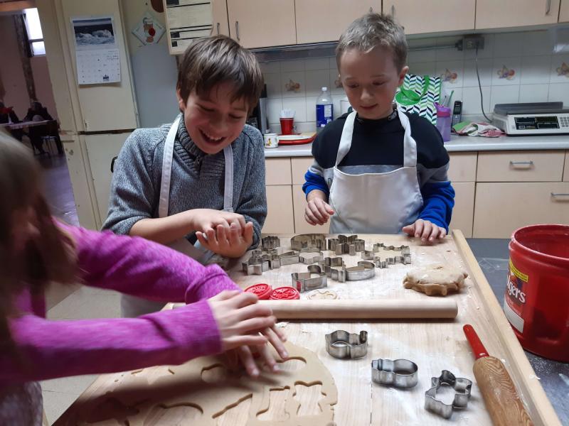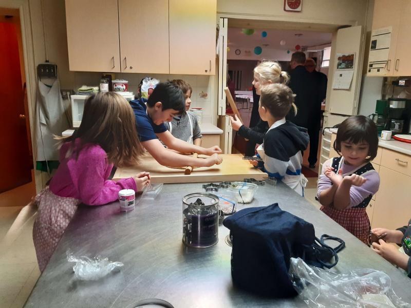 A program második felében következett a várva várt mézeskalácssütés. Már a Csillagösvény Református Egyesület elnöke, Nagy Enikő jóvoltából előre elkészített tészta nyújtása is nagy élmény volt: szorgosan perdültek-fordultak a nyújtófák a nagyobb gyerekek keze alatt, a kisebbek pedig csillogó szemmel figyeltek. Alig várták, hogy a felnőttek megállapítsák: jöhet a szaggatás. Nem volt könnyű a különböző formák kiválasztása, hiszen olykor már zavarba ejtő volt a figurák széles választéka. Természetesen mindenki igyekezett minél jobban színesíteni a gyűjteményt. A sütés szinte végtelennek tűnő percei könnyebben teltek a dekoráció előkészítésével: minden egyes darab egyedi tervezés és gondos odafigyelés eredménye lett. A felnőttek háttérsegítsége a csodálatos végeredmény megörökítésében és kóstolásában is megnyilvánult. A jó hangulatban elkészült mutatós és finom díszekhez már csak az illatos fenyőfát kell – a lehető legnagyobb titokban – beszerezni.