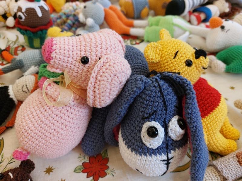 Kézműves termékek, alkotások színes skálája várta a sz érdeklődőket. Kicsiket és nagyokat csalogatott a horgolt mesevilág megannyi figurája. Találkoztunk gyermekkorunk kedvenceivel: Fülessel, Micimackóval, Tádéval, Süsüvel, vagy éppen a Szent családdal.