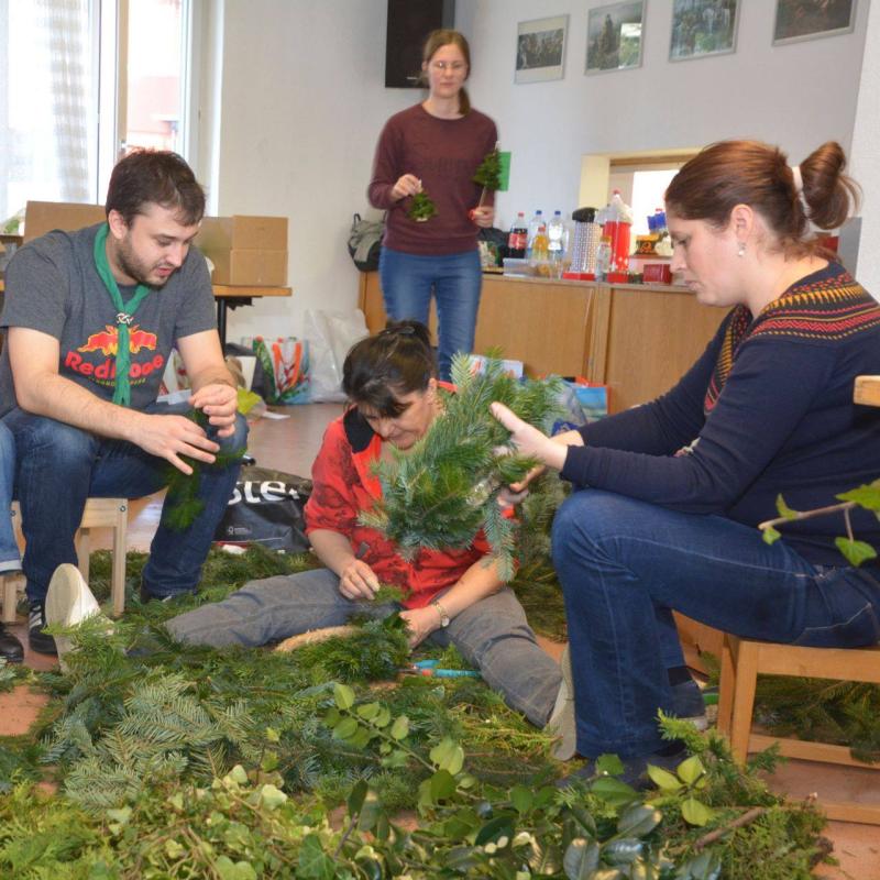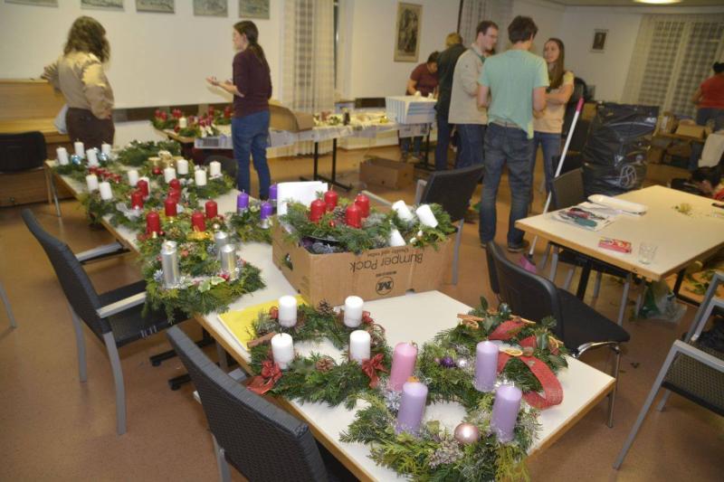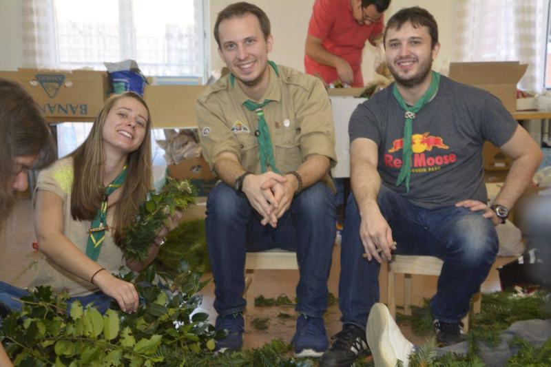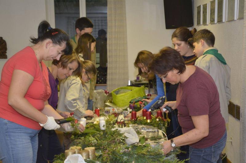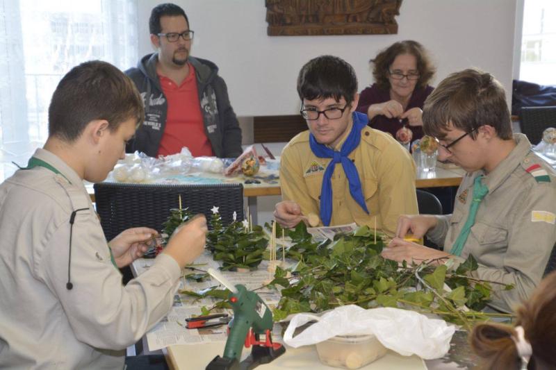 Délután a cserkészek és szülők, a sokéves hagyományt folytatva, adventi koszorúkat, díszeket készítettek. Sokan itt készítik el az ünnepi asztalra szánt koszorút.