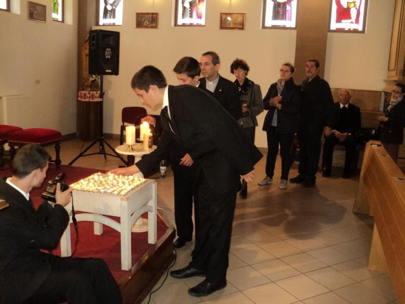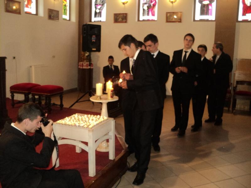 2016. szeptember 28-án, szerdán ausztriai magyaroknak egy zarándokcsoportja is útnak indult Gyulafehérvárra, hogy másnap, Szent Mihály főangyal főünnepén részt vegyen a gyulafehérvári főegyházmegye és a főszékesegyház búcsúján, valamint Isten Szolgája Márton Áron püspök kőszarkofágjának leleplezésén. Szeptember 29-én, csütörtökön 18.00 órakor mi, ausztriai magyar zarándokok, a gyulafehérvári Gróf Mailáth Gusztáv Károly Római Katolikus Teológiai Líceum diákjaival közösen nem egy gyertyát gyújtottunk Márton Áron püspök emlékére, hanem több mint százat. Mindenki gyújtott ugyanis gyertyát, aki jelen volt a líceum kápolnájában a Zödös Szabolcs Petőfi-ösztöndíjassal közösen tartott ünnepségünkön, amelyen Marosán Csaba, a Kolozsvári Állami Magyar Színház színművésze is bemutatta Áron püspökről szóló előadását.