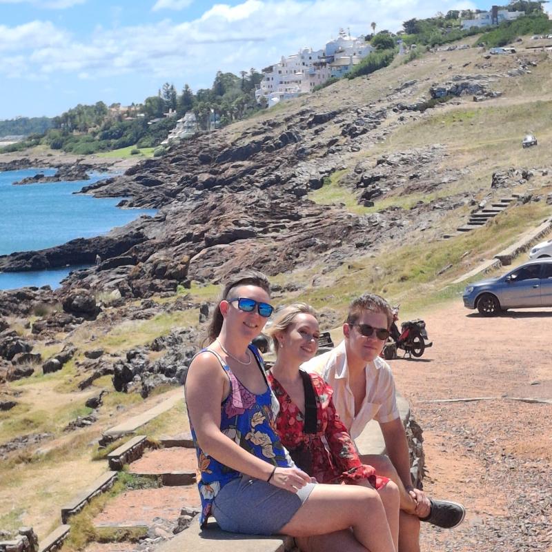 Kőrösi Csoma Sándor Program ösztöndíjas társaimmal, Német Vikivel és Deák Bálinttal boldogan ülünk a Páez Viláró házával háttérben.