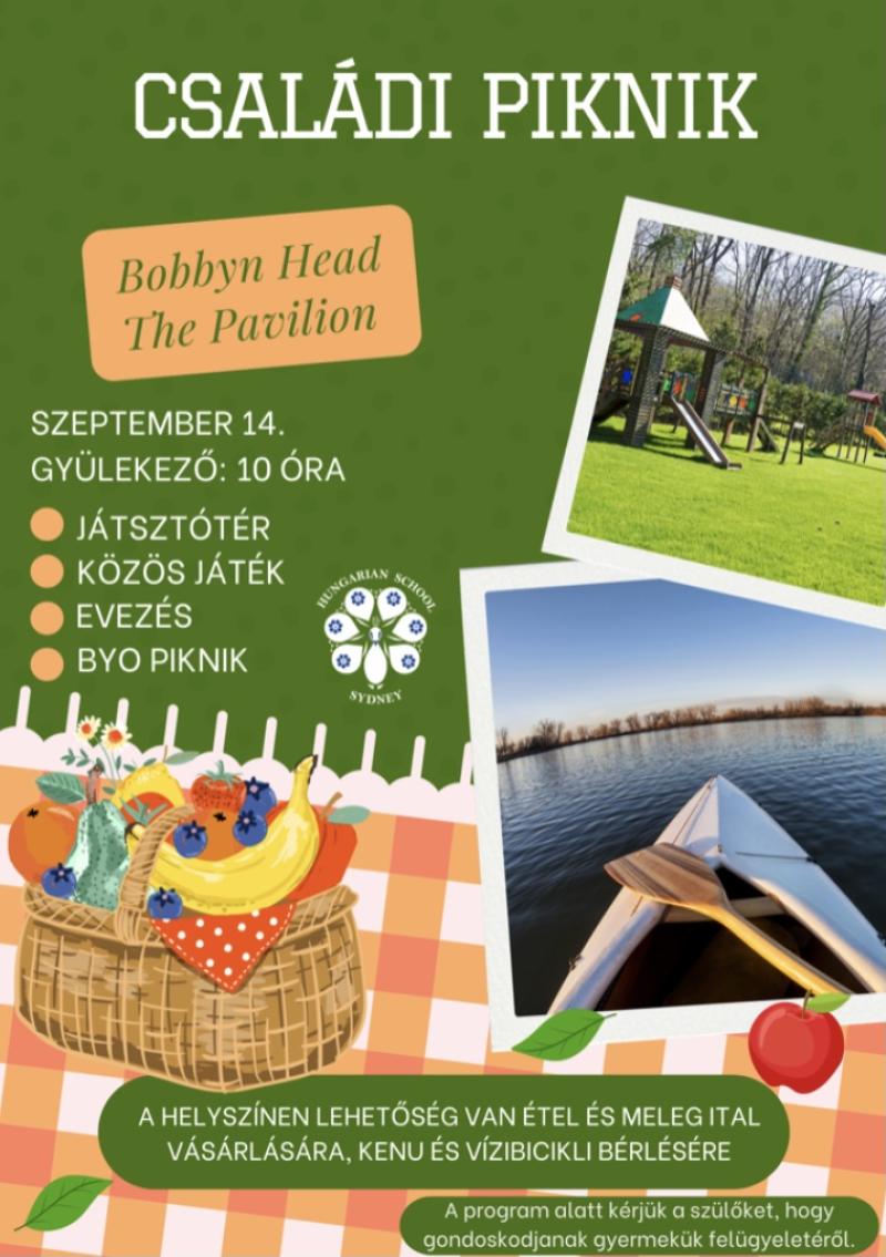 2024. szeptember 14-én, egy napsütéses szombati napon a Magyar Iskola Sydney tanárai és diákjai, valamint a tanulók szülei együttesen mentek el Sydney belvárosától körülbelül egy órányira található Ku-ring-gai Chase National Park-ba. A családi pikniken a finom falatokon kívül, a közös játékok és vízibiciklizés is egyaránt kedveltek voltak, valamint a nap zárásaként megtett túra is felkerült a dobogós helyre. Ez a kedves kis esemény pihentető, közösségépítő, élménydús és sok-sok nevetéssel, értékes beszélgetésekkel teli volt. Várom a következőt! :)