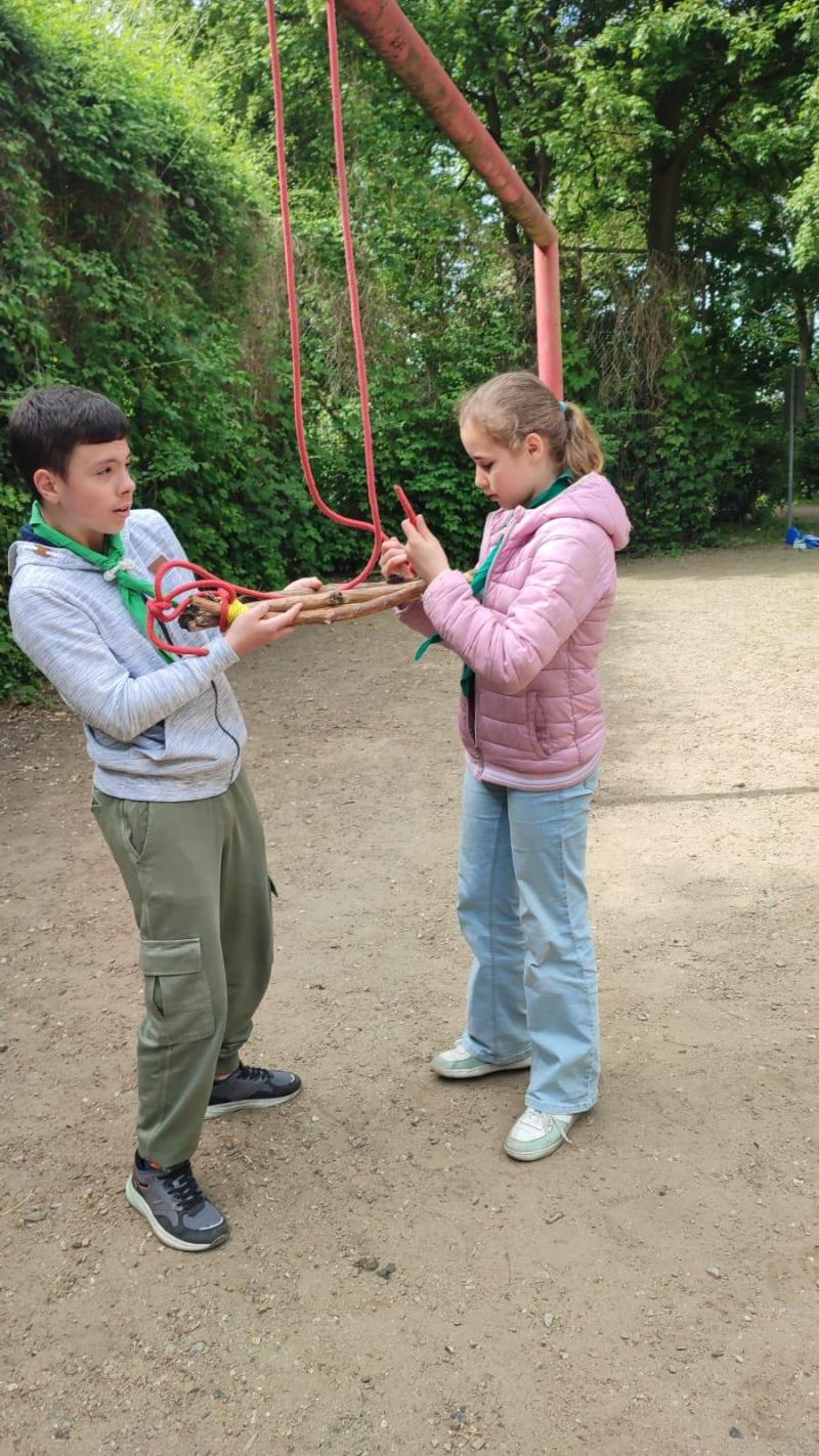 A nagycserkészek a csomók kötését gyakorolva készítettek hintát 2025. május 10-én - ezzel is készülve a közelgő csapattáborra -, amit a kiscserkészek is kipróbáltak az alkalom végén.