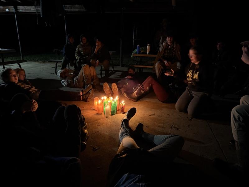 És valóban, volt minden, ami szívnek, kéznek, szemnek kedves: forgószínpad nyolc állomással (készülve az idei központi Akadályversenyre), festés, népdalozás, szoborkészítő verseny, áhítat, és ebédre őrsi főzés. Az esti tábortüzet Csajka Tamás és jómagam vezettük. A pavilon alatt tartottuk a dagonya miatt; kis ragyogó gyertyák köré telepedtünk le énekelni, játszani, együtt lenni.