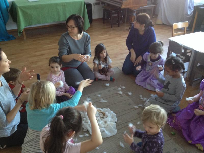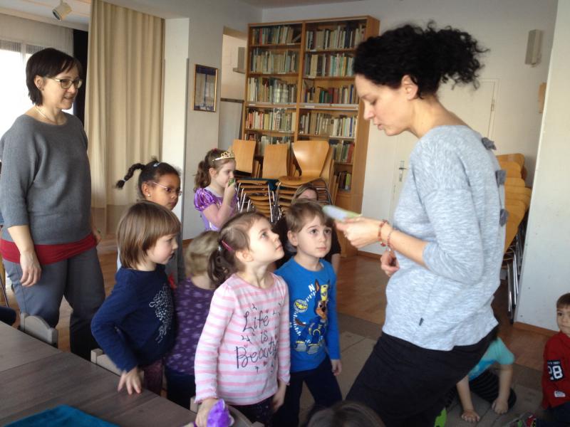 Szombat reggel Bécs utcái még csendesek, reggel kilenc óra körül épp, hogy beindul az élet. A szokatlan januári „melegben”, ragyogó napsütésben szállok fel az 1-es villamosra, s figyelem, ahogyan a házak közül kikandikáló napfény beszűrődik az ablakon. Mire a Schwedenplatzra érek, Dóri, Anna és Kriszti már előkészítették a 10 órától kezdődő óvodai foglalkozásra a termet – játszószőnyeget terítettek a koncerteknek, előadásoknak, találkozóknak, néptáncos és színházi próbáknak helyet adó nagyterem közepére, az ablak melletti asztalokon tányérok sorakoznak a közös falatozáshoz, a bábszínház díszletei az ajtó mellett felállítva várják, hogy kíváncsi gyerekszemek pihenjenek rajtuk.
