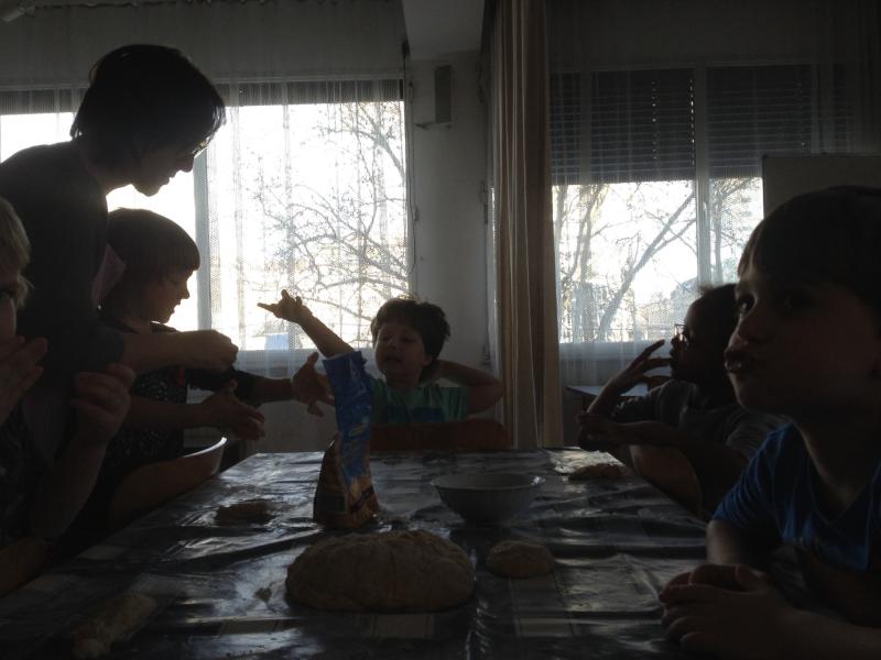 Anna a konyhában tüsténkedik, hiszen a mai alkalom különleges: a kétórás foglalkozáson kalácsot sütnek majd a gyerekekkel. Kérdésemre elmondja: egyszer sós cipót, máskor édes, tönkölylisztből készült kalácsot sütnek. Mire Anna a sütőbe teszi az összegyúrt tésztát, hogy alkalmas időre megkeljen, már hallani az előtérben gyülekező gyerekek hangját.