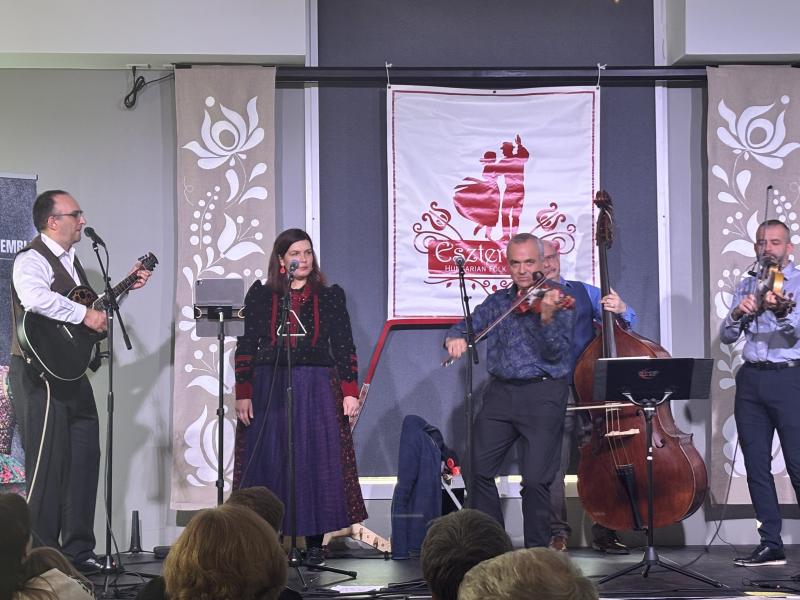 A délután a kanadai Gyanta Banda koncertjével indult, akik már az első dallamokkal magukkal ragadták a közönséget. Magyar Kálmán prímás, Garda Levente brácsás és Krasznai Attila nagybőgős olyan erővel és természetességgel szólaltatták meg a muzsikát, hogy a terem pillanatok alatt megtelt élettel. A koncert különleges pillanata volt, amikor a Gyanta Banda a helyi közösség meghatározó muzsikusaival – a Crossroads Band tagjaival, Balogh Endrével és Szabó Marcival – együtt zenélt. Ez az együtt muzsikálás nemcsak emelte a színvonalat, hanem igazi ünnepi hangulatot teremtett.