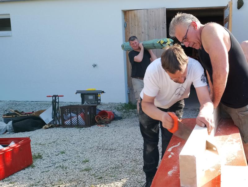 Kastl-ban az európai kerületi cserkészparkban nagy erőkkel folyik a munka! Összegyűlt a cserkészek szorgos csapata és időt, energiát nem kímélve dolgoznak az eszközök karbantartásán, felújításán vagy fejlesztésén. A sátrakat megtisztították, a szertár rendszerezés alatt, az előtérben pedig egy friss és ropogós (stabil, mint a szikla) cipőtartó kapott helyet. A cipőtartó felett pedig egy piros-fehér-zöld mintával díszített fogas foglalta el méltó pozícióját.