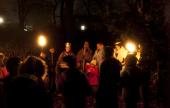 Az ünnepi alkalomnak két fő része volt. Elsőként a cserkészek különleges erdei karácsonya során a gyermek és felnőtt érdeklődők a karácsony esszenciáját gyűjthették össze a közeli parkban egy fáklyás felvonulás keretében. A tóparti parkban a résztvevők sorban találkozhattak a karácsony fontos szereplőivel és az általuk képviselt szimbólumokkal, illetve mondanivalóval. A menet végén a gyermekek megajándékozták a park madarait: a fákon és bokrokon elhelyezték az előzőleg közösen elkészített karácsonyfadíszként is működő téli madáreledeleket. A program meghitt és bensőséges hangulatot kölcsönzött az együttlétnek.