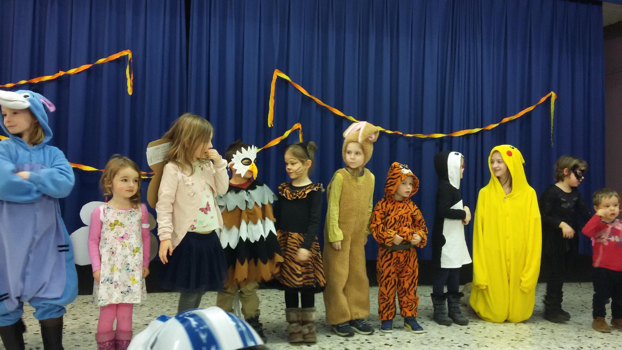 Február második szerdáján tartottuk a farsangot a Genfi Magyar Iskola és Óvodában. Számtalan gyönyörű jelmez volt, de voltak kiemelkedően kreatív gyerkőcök is, akik olyan élethű kosztümmel készültek, hogy egyes felnőttek megijedtek tőlük, mások pedig mindenkit megnevettettek. Egy rövid jelmezbemutató után, melyeket külön kategóriák szerint „zsűriztünk”, következett a megszokott népdaléneklés, utána fánk evő verseny, ahol tilos volt használni a kezeket, végül pedig az uzsonna után egy nagy Limbó hintóval zártuk a délutánt. Mind a picik, mind a nagyobbak jól szórakoztak, a szülők pedig csodálták gyermekeik ötletességét és együtt táncoltak velük a buli végén.