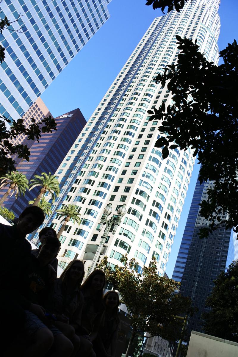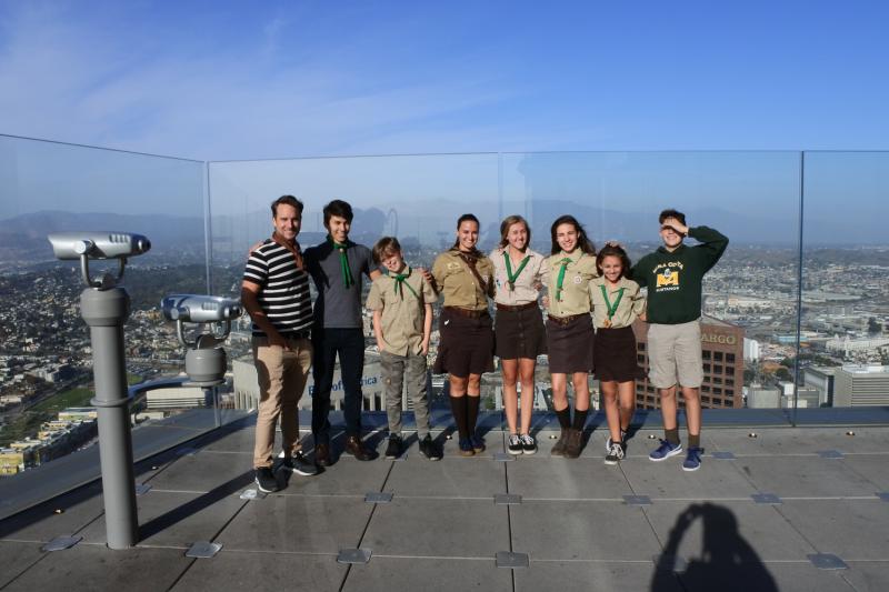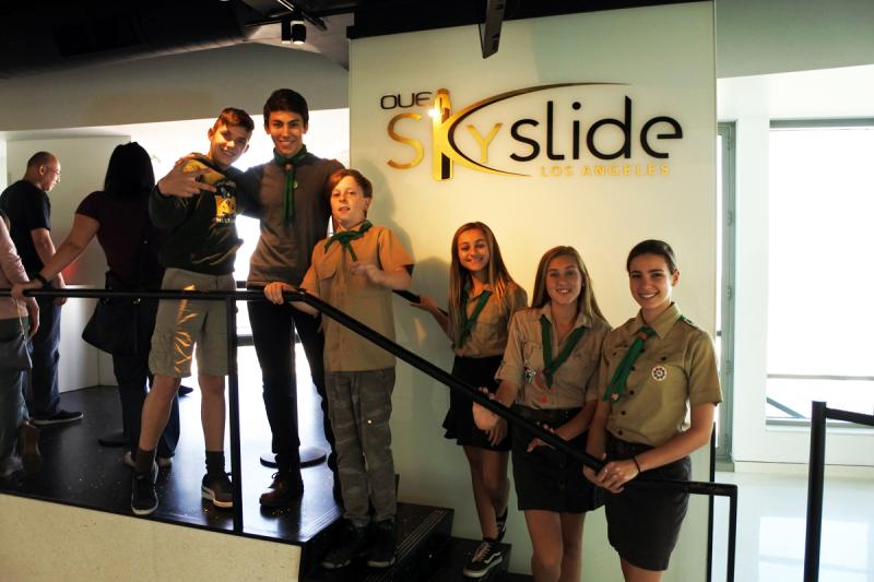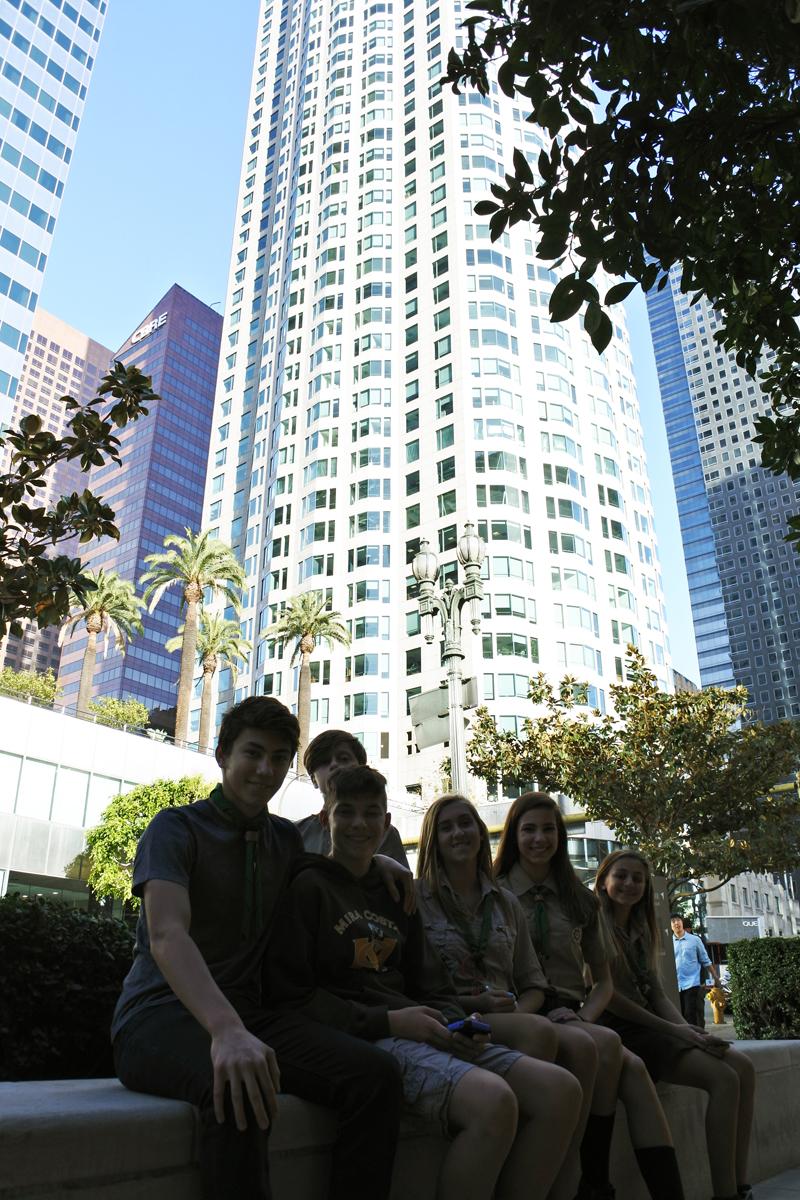 Aztán eljött a várva várt pillanat és minden kiscserkész felvette a farsangi jelmezét, amit a színpadon mutattak be. Ezzel a farsangi mulatsággal biztosan sikerült elűzniük a telet kiscserkészeinknek. Közben a nagyokkal közösen elutaztunk Los Angeles ikonikus felhőkarcolójához, a US Bank épülethez. Mielőtt felmentünk volna a több mint 310 m (1018 foot) magas torony kilátójába, a két cserkészőrs feladata volt megbecsülni, milyen magas lehet az épület. Majdnem pontosan sikerült eltalálniuk a toronyház magasságát. Az épület nevezetessége a tetején található Skyspace, ahol 360° panorámában lehet megcsodálni Los Angelest a magasból. Valamint itt található egy üvegfalú csúszda, ahol a bátor jelentkezők 300 méteres magasságban csúszhatnak le a 70. emeletről a 69-re. A cserkészek mindannyian kiállták a bátorságpróbát, és mint a magyar mondák legendás turulmadara repültek Los Angeles felett.