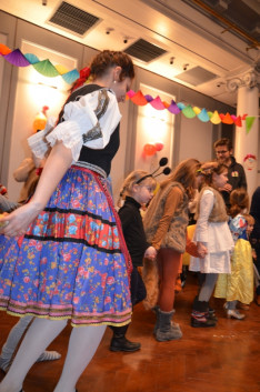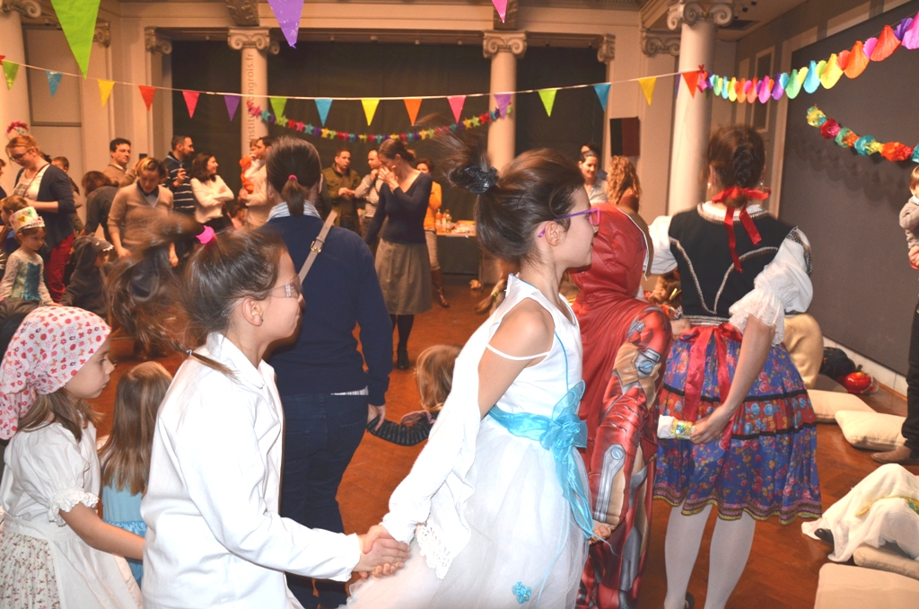 A sok hercegnő, lovag, s mindenféle erdei állat között még Yoda mestert és Harry Pottert is láthattuk felvonulni. Miután mindenki öltözékét megcsodáltuk, közös farsangi táncot jártunk a jelmezesekkel és a szervezőkkel egyaránt. Ezt követte a dalfelismerő játék: az általam furulyán játszott dallamot kellett a gyerekeknek kitalálni, s azokat aztán együtt el is énekeltük. Ezután egy új dalt tanultunk meg közösen, majd pedig az érdeklődőkkel népi játékokat játszottunk. A résztvevőknek a rövid szünetekben lehetőségük volt megkóstolni a többiek által készített házi finomságokat is.