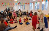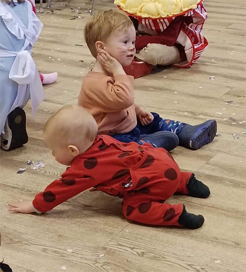 A délután a gyerekek farsangi forgatagával kezdődött. Egészen aprókáktól a nagyobbacskákig, a Csodaországból érkezett Alíztól Babócán keresztül Pókemberig mindenféle rendű és rangú lények és élettelen tárgyak képviseltették magukat.