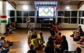 A gyermekek nem tétováztak, a kicsik és nagyok is egyszerre állították össze az akadálypályát, amin aztán mindenki végigment. Miután sikeresen teljesítették az akadálypályát, egy rövid szünet következett, majd elkezdődött a néptánc foglalkozás, ahol a táborozók pár alaplépést tanultak meg.