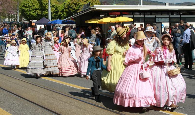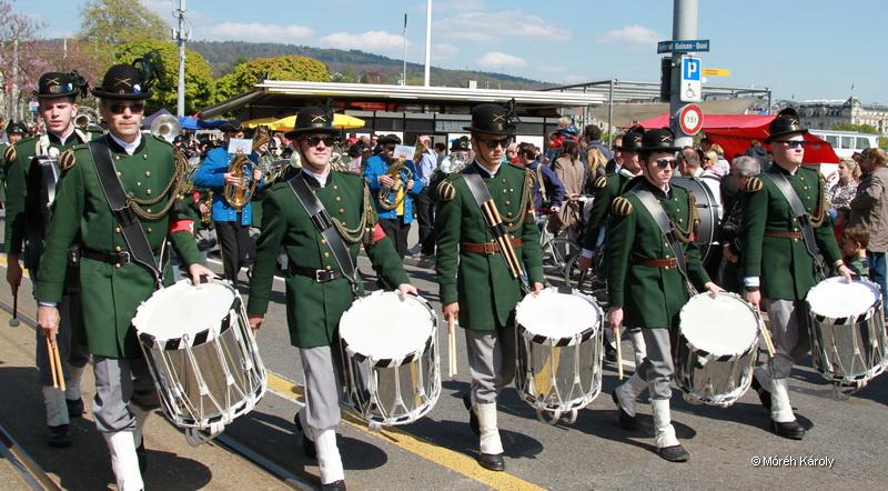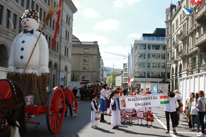 Svájcban a tavasz folyamán is visszatérhet a tél. Ezt tapasztaljuk idén is, az áprilisi hófúvásban sétálva, a félig kibomló virágú orgonák között. De nagy szerencsénkre a Sechseläuten (vagy a züridütschben “Sächsilüüte”, ami szabad fordításban hat órai harangszót jelent) tavaszköszöntő ünnepet követő és megelőző napok páratlanul szép napfényes időjárással köszöntöttek bennünket. A vasárnapi gyermekfelvonuláson nagyon jó volt a hangulat.