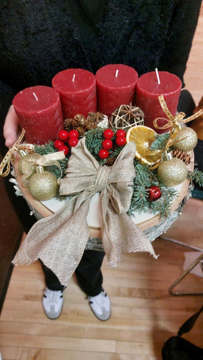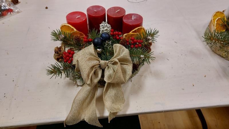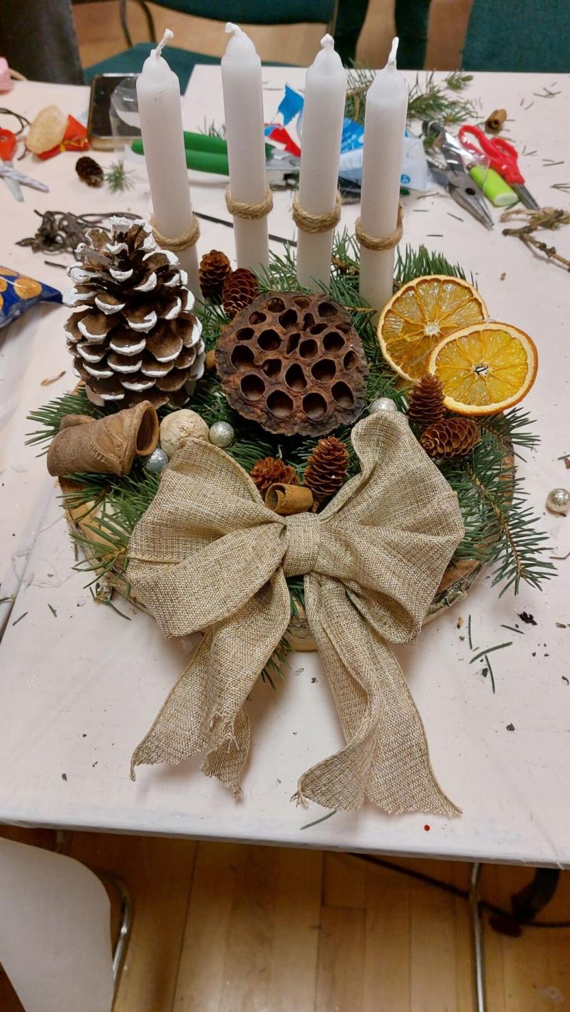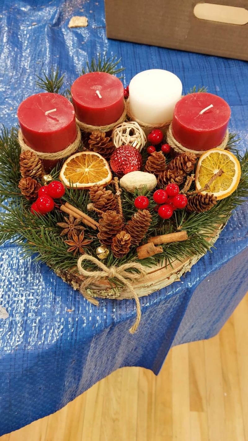 A résztvevők megálmodták, majd elkészíthették saját adventi koszorújukat. A hagyományostól a modern stílusig készültek koszorúk egyedi változatokban. Sőt, volt aki gyönyörű ajtódíszt álmodott meg. A termet fenyőillat lepte el és szorgos kezek dolgoztak egész délután.