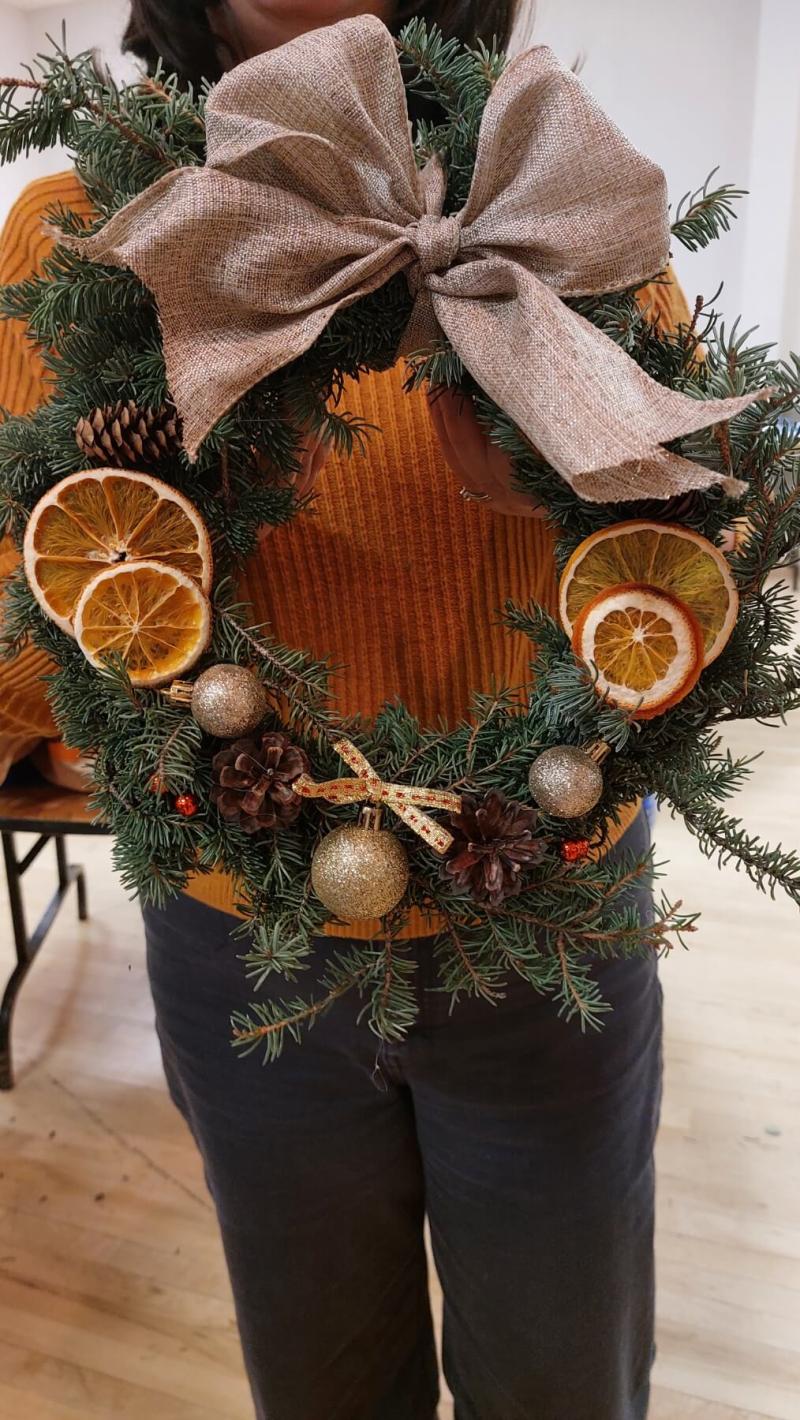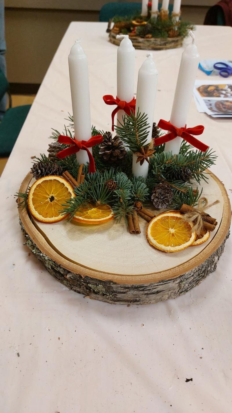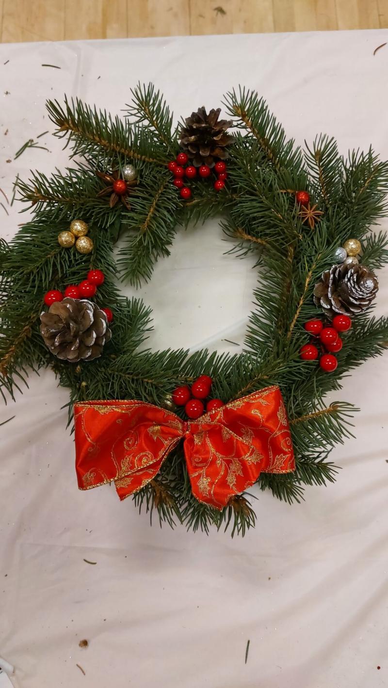 A résztvevők megálmodták, majd elkészíthették saját adventi koszorújukat. A hagyományostól a modern stílusig készültek koszorúk egyedi változatokban. Sőt, volt aki gyönyörű ajtódíszt álmodott meg. A termet fenyőillat lepte el és szorgos kezek dolgoztak egész délután.
