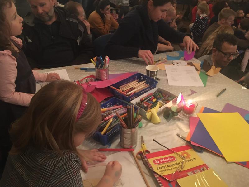 A program alatt végig volt lehetőség a kézműveskedésre is. Mézeskalácsot szaggattunk, díszítettünk az ovisokkal, a nagyobbacskák pedig karácsonyfa díszeket készíthettek.