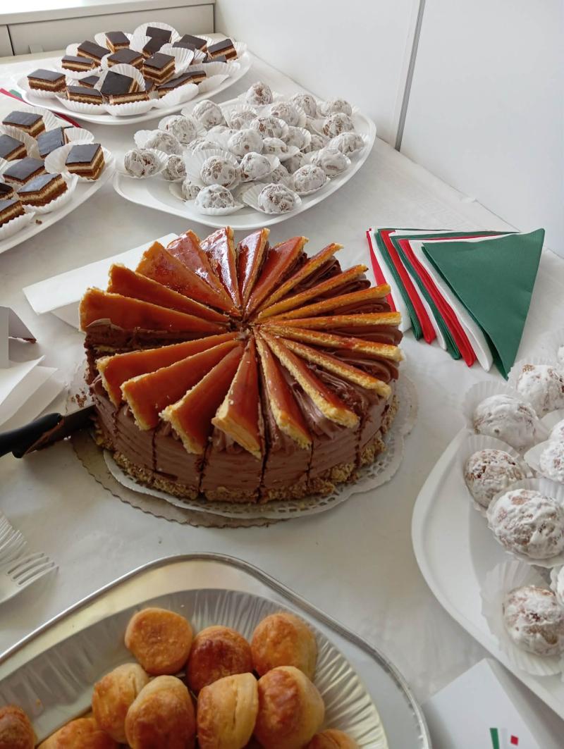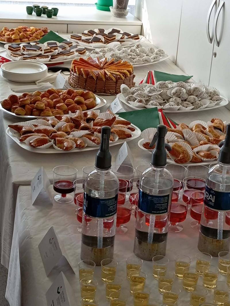A kiállítás élményét a magyar gasztronómia ikonikus ízei tették teljessé: dobostorta, diós-mákos pozsonyi kifli, túrós pogácsa és zserbószelet, amelyeket Egri Bikavér, pezsgő, törkölypálinka és szódavíz kísért.