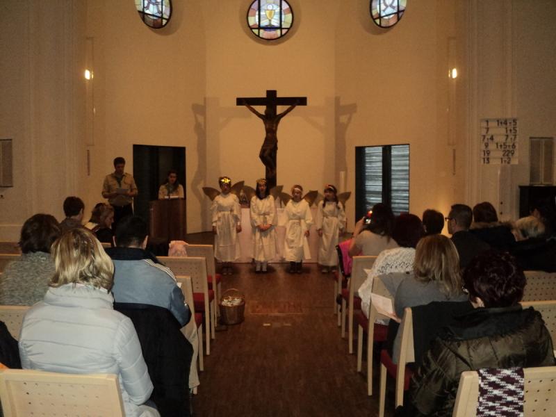December 17-én, szombaton délután a Magyar Házzal szemben lévő evangélikus templomban (Richard Wagner Str. 1) tartotta tizenharmadik karácsonyi ifjúsági igeliturgiáját és ünnepségét az innsbrucki magyar 79. sz. dr. Kozma György SJ Cserkészcsapat. Nagy-György Attila katolikus lelkész üdvözlő szavai után a sieglangeri Maria am Gestade-plébániától kölcsönzött jelmezekbe öltözött cserkészek hangszeres játékokkal kísért karácsonyi énekekkel, szentírásrészletek, elmélkedések felolvasásával, az adventi gyertyák meggyújtásával ünnepelték meg a kis Jézus megszületését. A gyönyörű és tartalmas műsort Schenk Angyalka cserkészvezető úgy állította össze, hogy az éneklésbe a közönséget is bevonta. Nagy-György Attila atya karácsonyi áldása után szeretetkört alkottunk és egymás kezét fogva elénekeltük az Erdő mellett estvéledtem palóc népdalt. Az est, melyen Csibi Krisztina, a budapesti Magyarság Háza igazgatója is részt vett, a Kőrösi-programhoz kapcsolódó Vidd haza a magyar szót! anyanyelvmegőrző és olvasásösztönző játék eredményhirdetésével és ajándékok átadásával zárult, amelyről kapcsolódó cikkünkben részletesebben is beszámolunk.