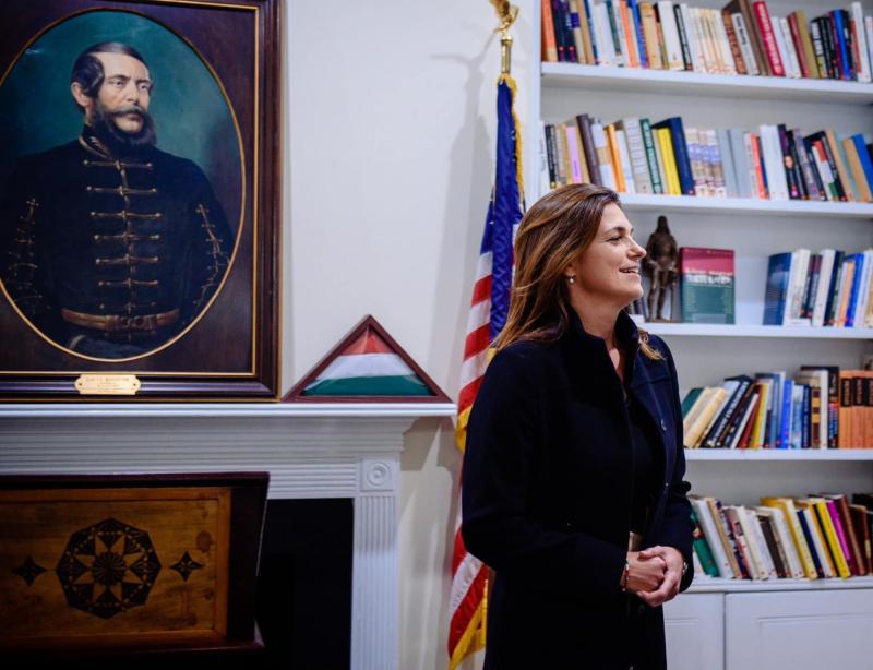 Dr. Varga Judit igazságügyi miniszter asszony Takács Szabolcs nagykövet társaságában és delegációja kíséretében látogatást tett a washingtoni Kossuth Házban október 25-én, ahol üdvözölte a ház dolgozóit, megtekintette a könyvtárat és az olvasótermet, majd megcsodálta a Kossuth Ház híres magyar zászlóit.