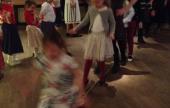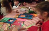 Február végén Patai Bori KCSP ösztöndíjas társam meghívására Münchenben jártam a Regös-táncházban, hogy a legkisebbeknek (4-12 éves korúaknak) kézműves foglalkozást tartsak. A felkérésnek szívesen tettem eleget, hiszen Regensburgban (Regensburgi Konzuli Magyar Iskola, Regensburg-Ost) is már sikerrel és lelkesedéssel barkácsoltunk a gyerekekkel. Szép számú magyar család érkezett, elsőként a gyerekesek, a program ugyanis gyermektáncházzal indult, de később a terem megtelt a táncos lábú felnőttekkel. Öröm volt nézni a sok kis pörgős szoknyás lánykát és fehér inges fiúcskát, ahogy a már ismerős lépéseket járták, énekeltek és körjátékokat játszottak. Amint a tánc befejeződött, kezdődhetett a kézművesség. Két tevékenységgel készültem: papírszövéssel és diócsörgő-készítéssel. A legkisebbek csak gyöngyöt fűztek, de láthatóan ez is nagy elégedettséggel töltötte el őket. Érdekes, hogy a papírszövés kicsit nehezen ment eleinte (talán nem gyakorolták ezt a technikát még a gyerekek), de a szülők aktív közreműködésével nagyon szép művek születtek. Megható volt a gyerekek azonnali bizalma irányomban, cserfesek, vidámak és érdeklődőek voltak. Míg mi a kézműves asztalnál ügyeskedtünk, elkezdődött a felnőttek tánctanulása és szabad tánca, melyhez remek muzsikusok húzták a talpalávalót. A gyerekek körülöttem énekelték és dúdolták az ismerős dalokat. Öröm volt hallgatni!