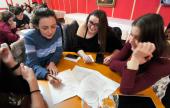 Négyfős csapatokat kértem, és kifejezetten arra biztattam a résztvevőket, hogy spanyol és magyar ismeretekkel rendelkező vegyes csapatokat alakítsanak. A cél nem csupán a játék volt, hanem az is, hogy még jobban megismerjük egymást, és a két kultúra tudása, élményei összeérjenek az asztaloknál. A gyerekeknek külön hungariukomos tesztet készítettem.