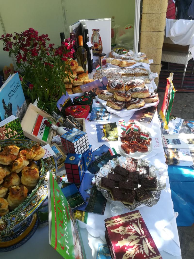 A verőfényes napsütésben, pálmafákkal körülvett parkban félkör alakban helyezték el az egyes országok sátrait. A felhozatal igen színes volt, jelen volt többek között Mexikó, Columbia, a Fülöp-szigetek, Franciaország, Lengyelország, Svédország is. Pultjaikon mindenki azt mutatta be, amit fontosnak tart kultúrájából: a népművészettől kezdve természetesen a gasztronómiáig. A magyar standon is megtalálhatóak voltak népi motívumaink, jellegzetes tárgyaink közül pedig pár Zsolnay porcelán darab és különböző Rubik-kockák is. Péksüteményeket, pogácsát, süteményt kínáltunk, amelyek mellé magyar borokat is lehetett próbálni, sőt a legbátrabbak még pálinkát is kóstolhattak.
