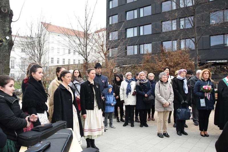 17 órakor ünnepi koszorúzás következett a Bessenyei György szobornál az "Europa"-Club szervezésében, ahol fellépett a Rézsarkantyú Citerazenekar, valamint a Barka Bécsi Magyar Népdalkör, ünnepi beszédet mondott Mentsik Szilvia, az AMAPED, az Ausztriai Magyar Pedagógusok Egyesületének és az Ausztriai Magyar Szervezetek Kerekasztalának elnöke.
