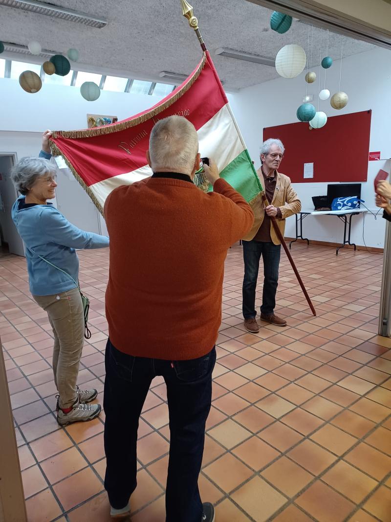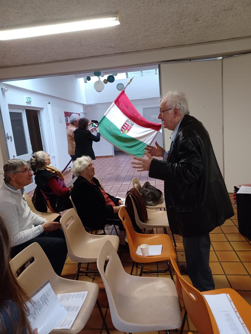 Már a zászlóbontás is külön élmény volt itt: a szombathelyi karmeliták által 1933-ban készített lobogó a magyar egyesület féltve őrzött ereklyéje és büszkesége. Az ünnepséget Reményi György, a Franciaorszàgi Magyarok Orszàgos Szövetségének elnöke moderálta.