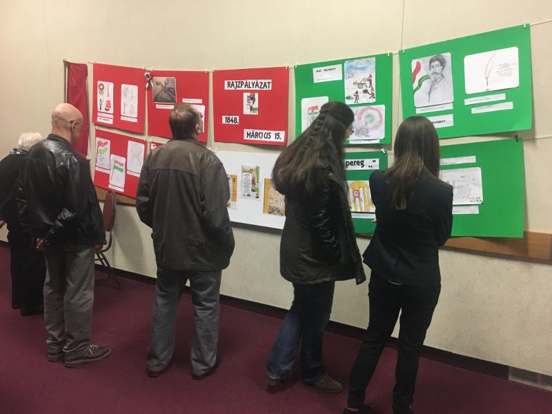 A megnyitó után, a program kezdeteként a „Trombita harsog, dob pereg” című, gyermekeknek kiírt rajzpályázat eredményhirdetésére és díjátadójára került sor. A négy korcsoport legjobbjai könyvjutalomban részesültek, melyet a zsűritől vehettek át. A pályázatra beérkezett alkotások a nap során megtekinthetők voltak. Ezután az egybegyűltek Kálló Béla és Tóth Péter Lóránt művészek színpadi játékát tekinthették meg, akik Arany János és Petőfi Sándor bőrébe bújva mutatták be a forradalom eseményeit. A műsor befejeztével közösen énekeltük el a magyar és székely himnuszt, majd egy kötetlen beszélgetéssel, kávézással zárult a rendezvény.