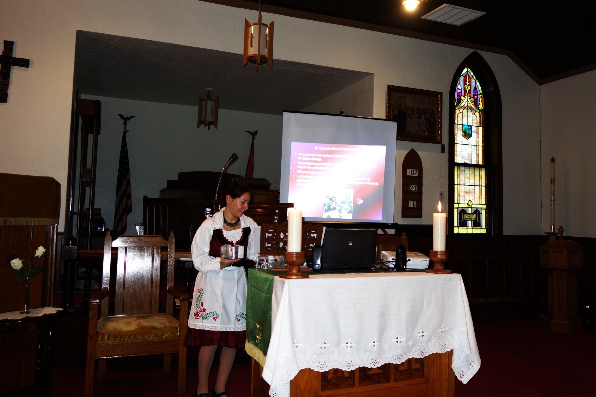 Az eseménynek a helyi Moriah kápolna adott otthont. Mivel a közösség tagjainak többsége már a diaszpóra területén született magyar, Márton Áronról mind hallottak, azonban munkásságával és Erdély történelmében betöltött szerepével, fontosságával kevés lehetőségük volt megismerkedni. Emiatt a megemlékezést a püspök élete és munkássága köré szerveztem. Az előadást egy magyar népdallal indítottam, majd Erdély politikai helyzetének változásainak ismertetését követően Márton Áron püspök szülőföldjét, és fiatalkorát mutattam be. A körülmények bemutatását követően megismerkedtünk Márton Áronnal mint fiatal lelkésszel majd mint Erdély püspökével. Tevékenységeiből kitűnt a püspök népéhez való hűsége, az emberek iránti igaz felebaráti szeretete és a közösségért végzett fáradhatatlan munkája, melyet az Erdélyben uraló kommunizmus nehéz és válságos korszaka sem állíthatott meg. Márton Áron egy olyan korban élt és dolgozott a közösségért, amikor saját leírása szerint „…még soha nem volt úgy reá szorulva a szeretetre az emberiség, mint manapság, amikor a gyűlölködés vérözönnel önti el a földet, s amikor a népek és egyesek elnyomása napirenden van.” Töretlen közösségi munkájában többek közt egyik legerőteljesebb meggyőződése biztatta, mely szerint: „A hatalom Istentől van, és azért van, hogy Isten törvényeinek érvényt szerezzen, az igazság és a szeretet nagy parancsait megtartsa. S minden hatalom számára, amely ellenkező utakon jár, elkövetkezik a pillanat, amikor önteltsége következtében a körülményeket már nem képes józanul mérlegelni, a szurony hegyén, ahonnan diktált, nem tud egyensúlyban maradni, nem tud a helyzetnek ura lenni; hanem a felforgatott helyzet, a felbőszült körülmények, a megsértett jogrend, igazság és szeretet kel fel ellene és lesz úrrá fölötte.”