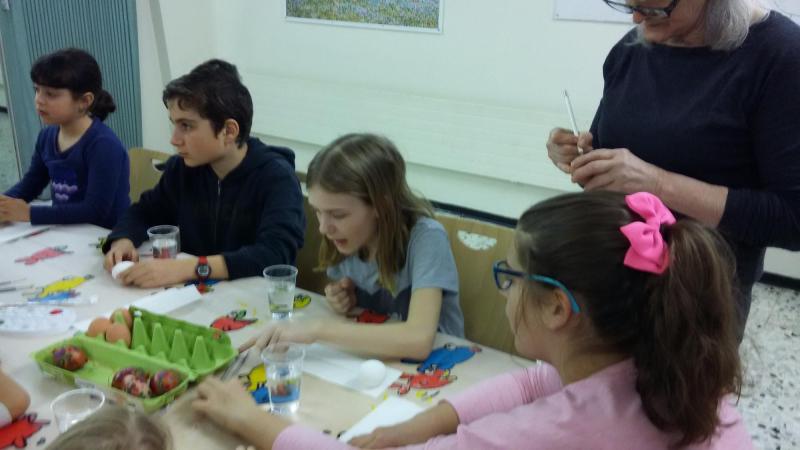 Tóthné Margó látogatott el múlt szerdán a Genfi Magyar Iskola és Óvodába egy húsvéti előkészítő foglalkozásra. Matyó hímzéses tojásfestést tanulhattunk tőle, így már biztosan mindenkinek idejében készen lesznek a locsolókat váró ajándékai.