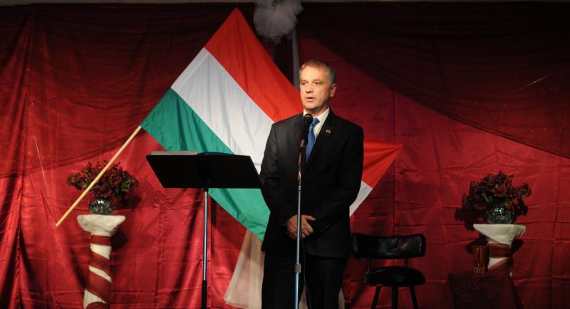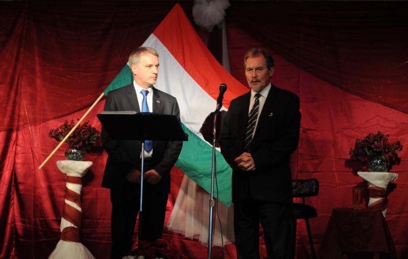 Ezt követően az ünnepi ebéd után az 1848-1849-es forradalom és szabadságharc huszáráról elnevezett Zágonyi Károly teremben Széles Tamás főkonzul beszédében megemlékezett az 1956-os forradalomról és hőseiről. Napjaink ügyei közül a főkonzul az Ukrajnában élő, Kárpátaljai magyarok viszontagságos helyzetét ismertette, támogatásukra bíztatva a hallgatókat. Az ünnepség zárásaként a himnusz és a székely himnusz közös éneklésével emlékeztek az összegyűltek a szabadságharcra.