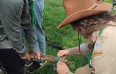 "SOS! Robinsonnak kell a segtségetek! Menjetek át két híd alatt délnyugat irányban!" Ezzel a morze megfejtéssel indultunk délnyugatnak, hogy segítsünk neki tutajt építeni különböző csomók bemutatásával.