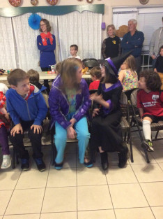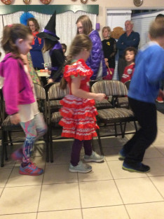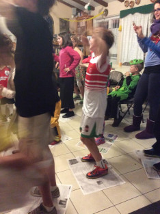 A farsangi mulatságon meséltünk és be is mutattuk a gyermekeknek a busójárást és tikverőzést, majd indulhatott a táncverseny: egyre kisebb és kisebb darabokra összehajtott újságpapíron kellett ropni anélkül, hogy bárki lelépett volna róla. Az estéről nem maradhatott el a zenés szék játék sem. A legkisebbeknek nehéz volt elfogadni, hogy mindig eggyel kevesebb szék van, mint ahány gyermek, és nem tud mindenki leülni. De azért a javukra legyen mondva, kitartóan táncolt és harcolt ülőhelyért a busó, nindzsa, tűzoltó, királylány jelmezbe bújt gyermeksereg.