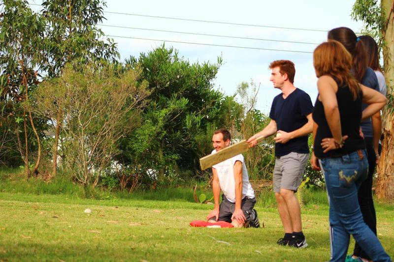 Az Montevideohoz közeli Sierra de las Animas-ra kirándult az egyik legaktívabban működő uruguay-i nyelvi csoport 2016 november 19-én. A délelőtti kirándulást követően az egyik tanuló házába utazott vissza a csapat, hogy kipihenjük a túra okozta fáradalmakat. Pihenni azonban aligha lehetett, mivel Zsuzsával - az ösztöndíjas kollegával - bejelentettük, hogy métázni fogunk. Természetesen senkinek sem volt ellenvetése. Szerencsére a házhoz tartozó terület nagysága lehetővé tette, hogy kényelmesen tudjon métázni rajta a két, 8 főből álló csapat. Ismertettem a szabályokat, majd a szemléletesség kedvéért egy próbakört játszottunk. Hamar elsajátították a tudnivalókat, majd kezdetét vette a mérközés, ahol mindenki önfeledten küzdött, hogy előbb érje el a kitűzött pontszámot.