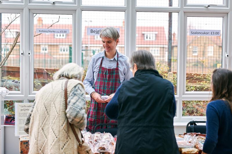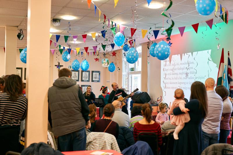 Érdeklődők százainak a jelenlétében tartották meg december 2-án az ARKME egész napos karácsonyi vásárát. A Szent István Ház háromszáz négyzetméteres közösségi termében megrendezett eseményen a magyar nyelvű könyvektől a díszedényeken át a hagyományos ünnepi ételekig számos, a karácsonyhoz és szilveszterhez kapcsolódó portékát vásárolhattak az érdeklődők. A jelenlévő gyerekek számára a nap csúcspontját kétségkívül a Mikulás megjelenése és a névre szóló ajándékosztás jelentette, amire az érdeklődők nagy száma miatt (két turnusban összesen száztíz gyermek érkezett a szüleivel együtt) a nap folyamán kétszer is sor került. A Mikulás jelenlétét idén a KCSP biztosította. (Fotók: Kelemen Lehel)