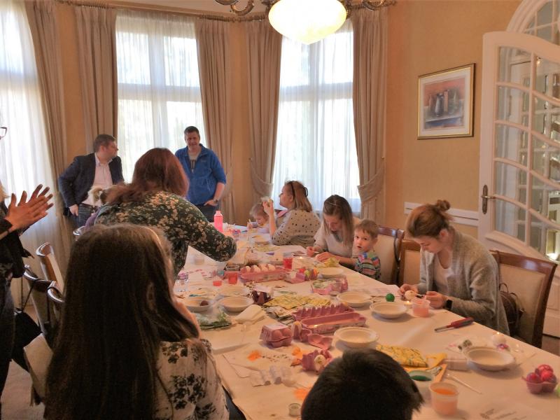 A FO NO első alkalommal március 29-én, nagycsütörtökön délután fél háromkor vette kezdetét hagyományőrző tojásfestéssel a norvég külképviseleten. A gyerkőcöknek és felnőtteknek lehetőségük nyílt három tojásdíszítő technikát kipróbálni, így a tradicionális írókázott hímestojásokon kívül készültek szalvétatechnikával díszített és márványozott mintájú remekművek egyaránt. A szebbnél szebb alkotások készítését tojásos nokedli és fejes saláta követte. Két óra alatt mind a százhúsz tojás díszbe öltözött és elégedetten távoztak a vendégek, kezükben a locsolóknak szánt ajándékokkal.