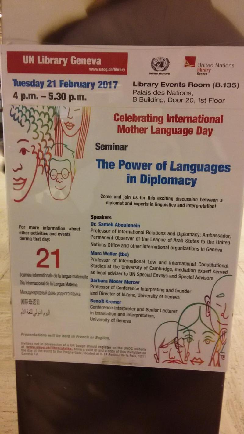 Az UNESCO 1999-ben február 21-ét az anyanyelv nemzetközi napjává nyilvánította, hogy felhívja a figyelmet a Föld nyelvi sokszínűségére. 2000-ben ünnepelték először és azóta minden évben rendezvényeket, szimpóziumokat tartanak ezen a napon, melyen most 2017-ben én is részt vettem. Kínaiul, oroszul és arabul is megtanultam leírni a nevemet, mely után igazán izgalmas kvízjátékokat mutattak meg nekünk.
