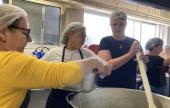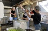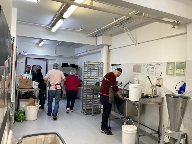 A csapat gyorsan felosztotta a feladatokat – volt, aki hagymát aprított, mások a húst készítették elő, és akadt, aki a főzőcsapatot kávéval látta el. A sok szorgos kéznek köszönhetően a munka gördülékenyen haladt, és kora délutánra el is készült a finom étel. Az előző napi jókedvű sürgés-forgás után vasárnap már mindenki együtt fogyaszthatta el a közösen főzött székelykáposztát, amely nagy sikert aratott.