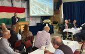 Az egybegyűlteket a Szövetség nevében Géber Sándor elnök-helyettes köszöntötte, majd átadta a szót dr. Csepeti Ádámnak, a Miniszterelnökség stratégiai ügyek koordinációjáért felelős helyettes államtitkárának, aki ünnepi gondolatait az egybegyűltekkel megosztva tolmácsolta a „közel 10 ezer km-re fekvő” anyaország üdvözletét.