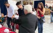 A háromfogásos ünnepi ebédet csirkehúsleves vezette fel, majd sertéskaraj következett petrezselymes burgonyával, gombamártással és csalamádéval. Desszertként fagylaltot kínáltak. Azoknak, akik e lakoma előtt vagy után még szívesen nassoltak egyet, a március 14-én születésnapját ünneplő Lechky Károly egyesületi elnök fokhagymás-tejfölös lángossal kedveskedett.